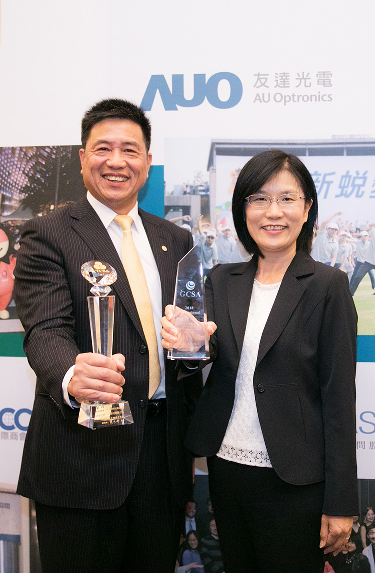 AUO Chairman & Chief Executive Officer Paul Peng (pictured right) was awarded the first annual “GCSA – Professional” for actively promoting the industry’s sustainable development.