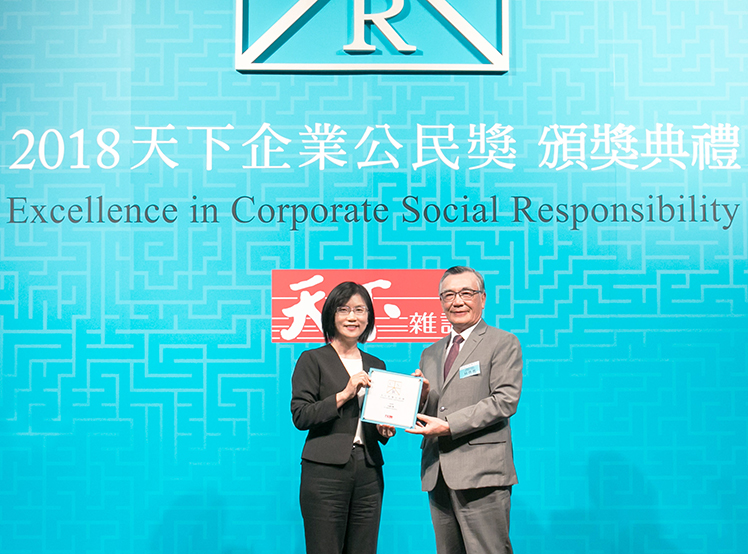 友達榮獲 2018 天下企業(yè)公民獎,由友達光電永續(xù)長古秀華 (左) 代表領(lǐng)獎